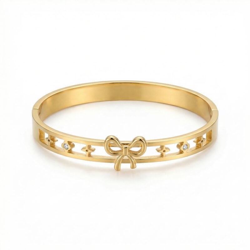 PYARI 18K Gold Plated Anti-Tarnish Bow & Stone Studded Kada Bracelet